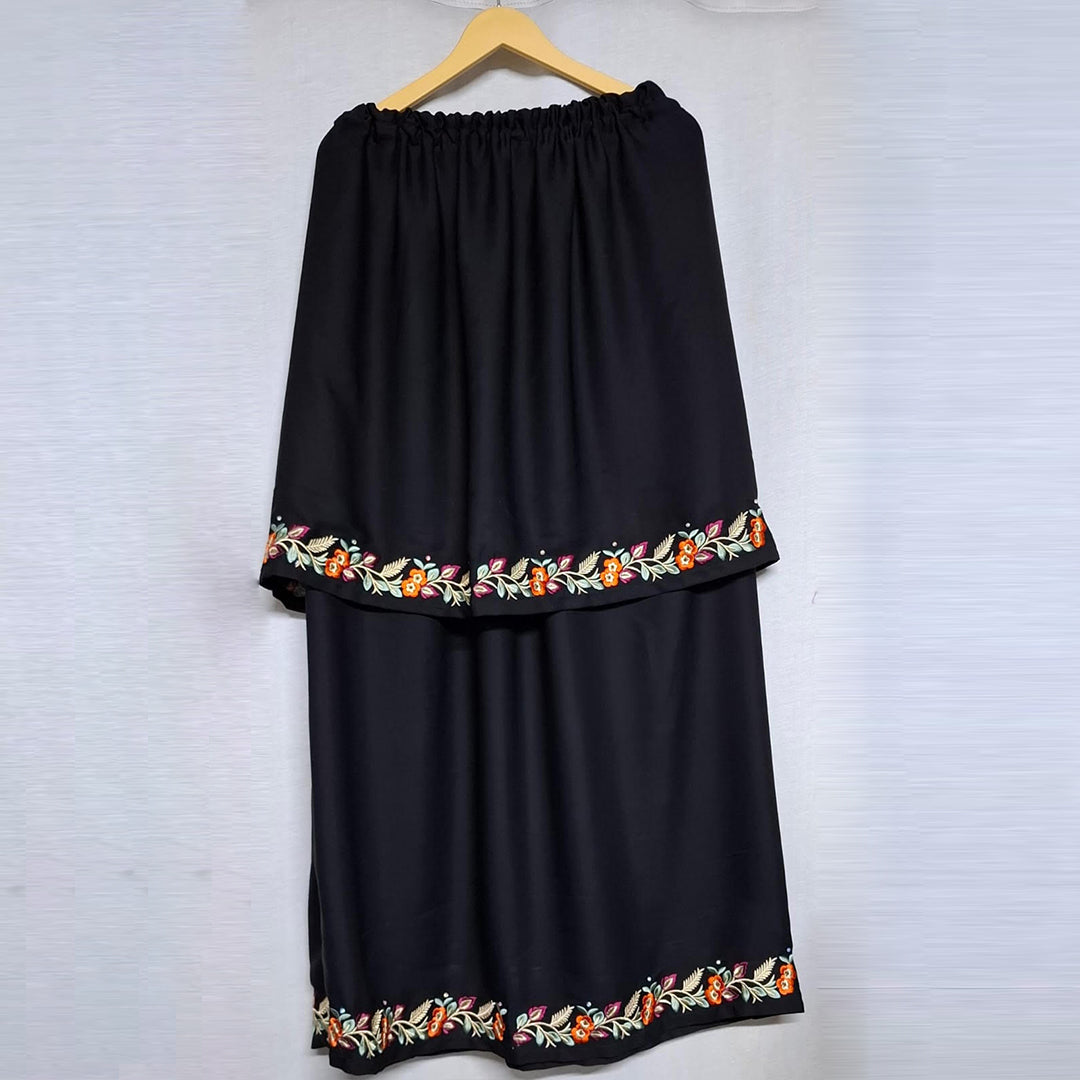 صاية أمازيغية فاخرة مصنوعة من ثوب الكريب الأسود المعروف بأناقته وسهولة انسيابه، مطرّزة بخيط الحرير الأصلي الذي يبرز جمال الزخارف الأمازيغية التقليدية. تمتاز بتفاصيل دقيقة وصنعة متقنة تمنحها طابعاً أصيلاً ولمسة عصرية في نفس الوقت. اختيار مثالي للمناسبات، ولمن تبحث عن إطلالة راقية تحمل روح الهوية الأمازيغية بكل فخر.